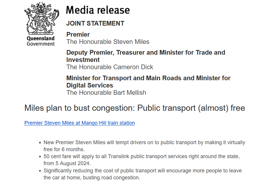 The Queensland Labor government has just announced something big. The Premier might not even understand exactly how big the ramifications will be in terms of shifting commuter behaviour (perhaps none of us do yet), but this seems like a genuinely good thing...