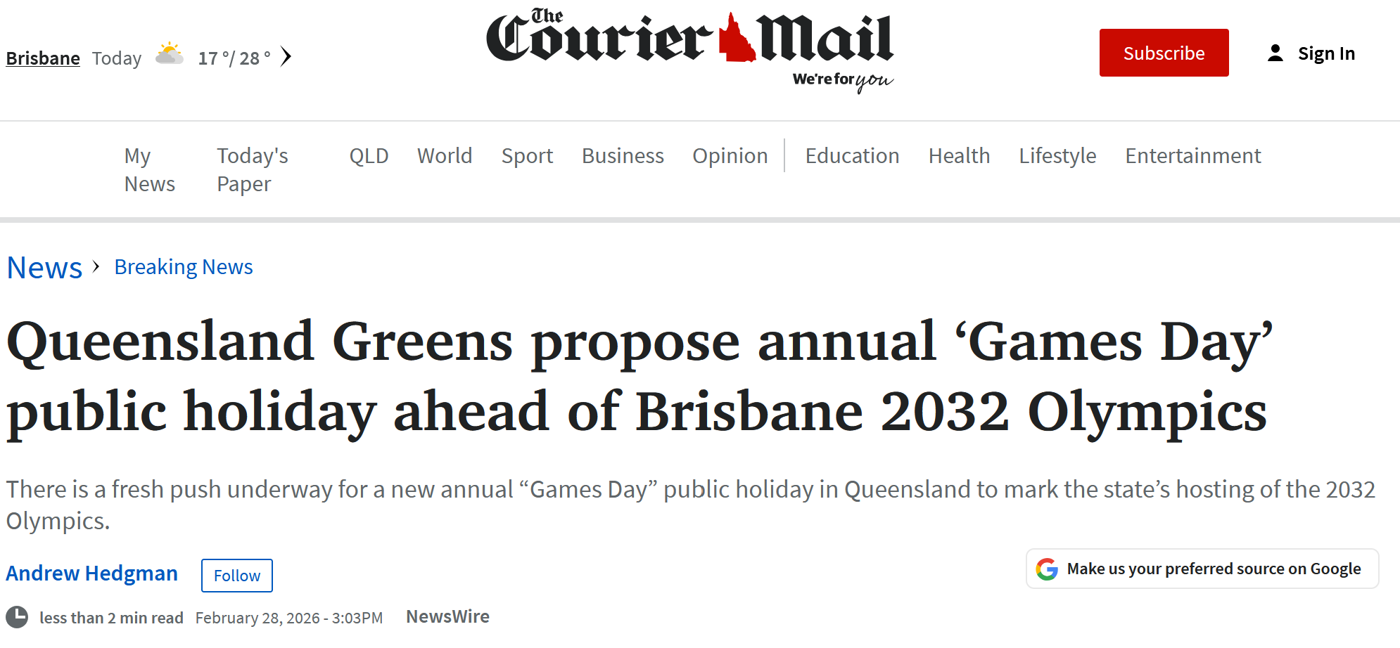 The harsh reality is that the Greens' initial media push regarding "a people's Olympics" made no discernible dent in Queensland's political discourse. Elizabeth and Michael attracted some limited mainstream media coverage focussed on their calls for an Olympics public holiday, but the story dropped out of the news cycle pretty quickly. Their social media assets also didn't travel very far online.