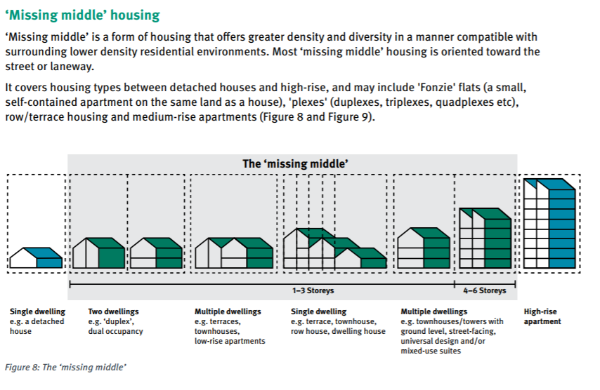 The main response that progressive planners, advocacy groups and political parties like the Greens (to some extent) have offered is ‘missing middle’ development – medium-density housing such as townhouses and apartment blocks of around 3 to 5 storeys...