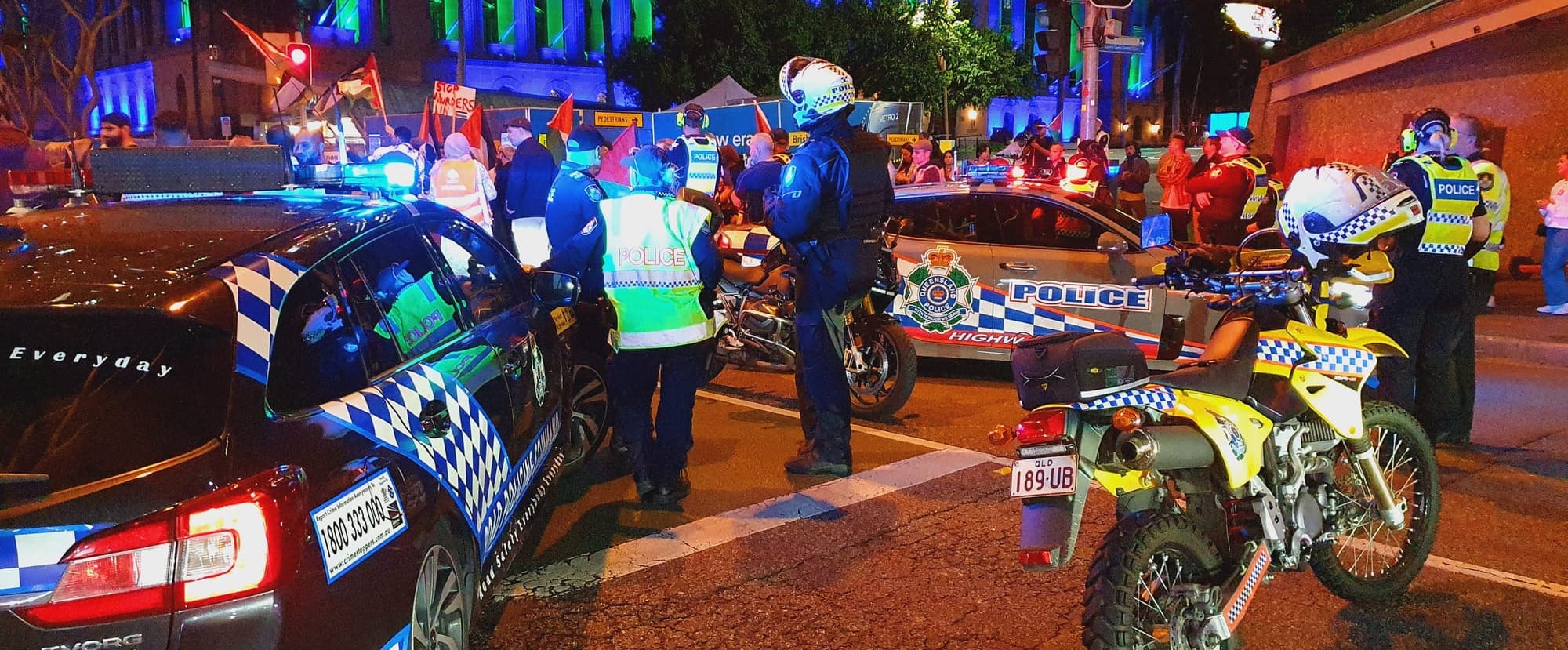 The other lesson I was reminded of on Friday night is that the designated QPS ‘negotiators’ have no significant power and generally aren’t worth engaging with. These are the QPS employees who usually wear blue baseball caps and aren’t in full police uniform, who position themselves as the contact point between protest organisers and police command.